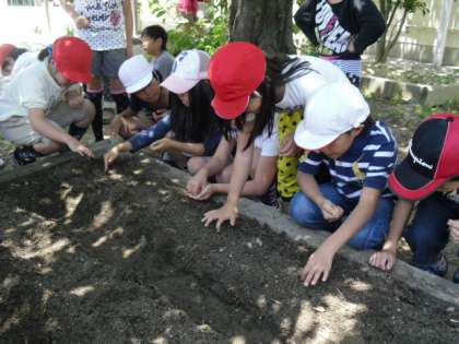 理科の時間に種の観察をしてきたひまわり・ホウセンカ・オクラの種をうえました。