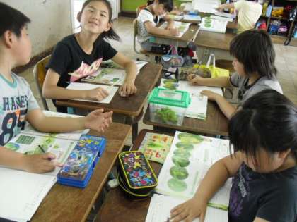 体育のあとも、たまごがどこにあるのかを中庭で探しました。