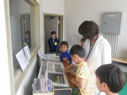 1年生は学校の中をたんけんをしました。