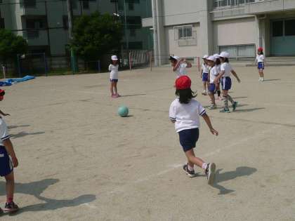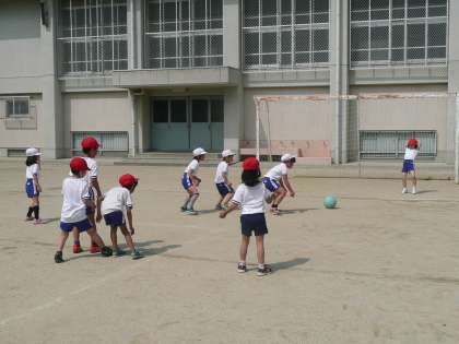 今週から体育は「ようぐあそび」をしています。今日はボールを使って、ころがしドッチをしました。みんな楽しそうにボールを転がしたり逃げたりして遊ぶことができました。ルールもよく理解できて、ころがすのも上手なので、ドッチボールにつなげていけそうです!