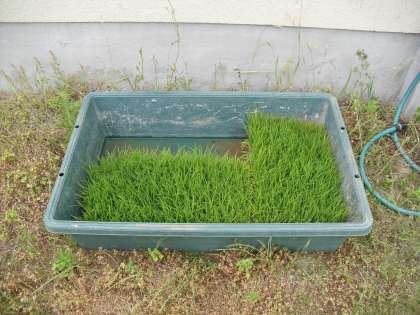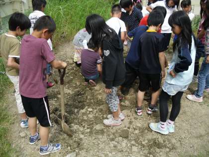 先日,5年生の保護者から稲の苗をいただきました。この後,6月に田植え体験をしてから旧ビオトープに植えていく予定です。それまでに石拾い,整地をしてから耕していきます。まだまだ道のりは長そうですが,みんなで協力して作り上げていきます。