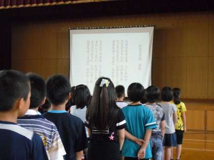 6月3日 公開日 2013/06/03 更新日 2013/06/03 5年生の部屋 今朝は朝会がありました。 明日の式典に歌う校歌の練習をしたり,委員会の発表をしたり,6年生の詩を聞いたりしました。 5年生にとって初めての委員会の発表です。今日は,図書委員と保健委員の発表があったのですが,とても堂々としていてよく分かりました。