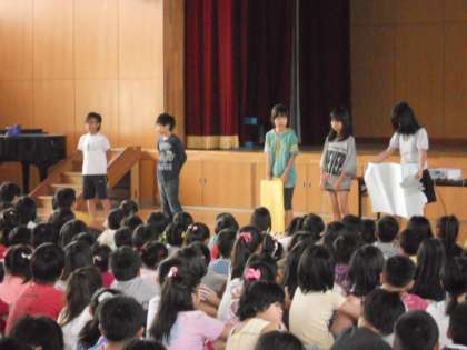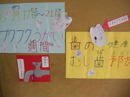 6月になりました。今日の朝会では,6月17日からの「ブクブクうがい週間」について,保健委員会発表をしました。何度も何度も練習して,動きを入れて発表に工夫を凝らしました。17日からは委員会で作った「ブクブクうがいの歌」も放送していきます。給食の後はみんなでブクブクうがいして,向島の子の笑顔に似合う自慢の歯になります♪