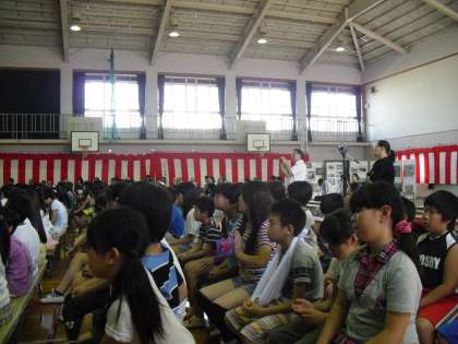今日は向島小学校の130周年記念として,1・2時間目は式典がありました。前半は厳粛な雰囲気の中,校歌額の除幕式などが行われました。後半は向島小学校の大先輩から昔の向島小学校の様子を教えていただきました。5年生もしっかりと先輩の話を聞くことができていました。卒業しても向島小学校の先輩として,今日聞いたお話を語り継いでいってもらいたいです。また式典終了後は,5年生が中心となって後片付けをしてくれました。さすが5年生,てきぱきと動いてくれました!
