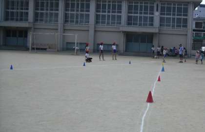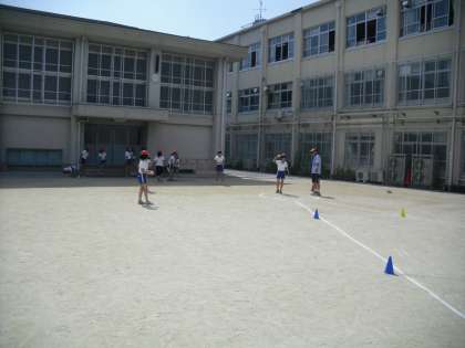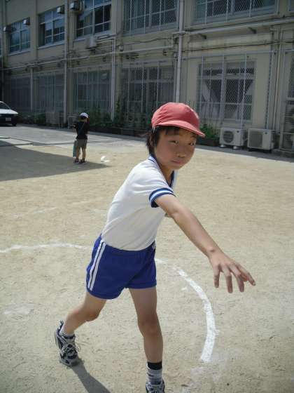 今日の体力測定はソフトボール投げでした。あまり野球などの経験がないのか全体的に,記録は低調でした・・・