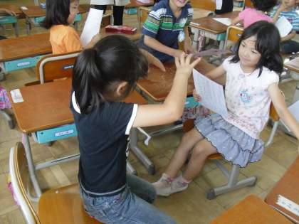国語の授業でなぞなぞを自分で作りました。今日は,友達に自分の作ったなぞなぞを出したり,友達のなぞなぞに答えたりして楽しみました。3つのヒントから答えを探すことがとても楽しかったようです。
