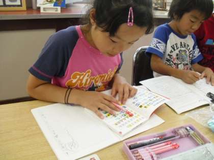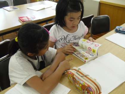 記号によっては、色があるものもあり、「なんで赤と青なんだろう?」や「この意味なに?」と互いに調べていました。