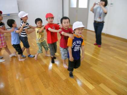 貨物列車や猛獣狩り,歌など楽しく一緒に交流することができました。