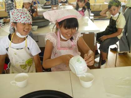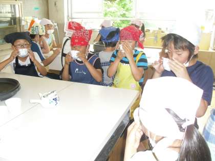 自分たちで煎った茶葉を急須に入れ,みんなで味わっていただきました。