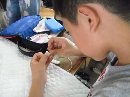 今日は,山の家宿泊学習に持っていくナップザックづくりをしました。