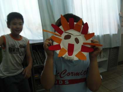 今日の図工は、紙皿を使って工作をしました。