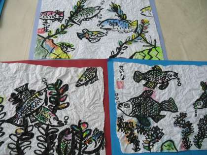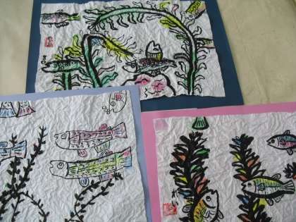 今日の図画工作では,『墨を使って描こう』の鑑賞会をしました。