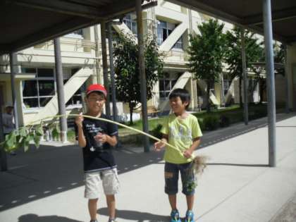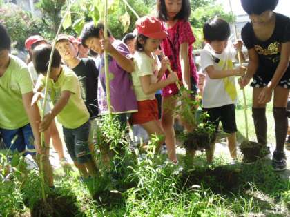 自分よりも大きいひまわりでしたが、1組2組の代表と力を合わせてそっとぬきました。