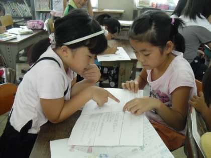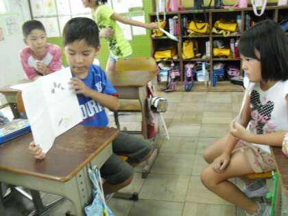 次は、発表の練習をしています。自分で調べて作った物なので、楽しんで取り組んでいました。