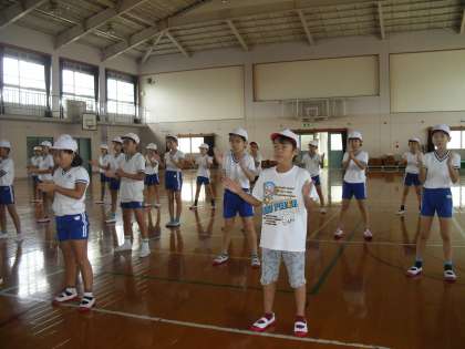 指先にまで気を使い,汗をかきながらがんばって練習をすることができました。隊形移動の練習もしました。