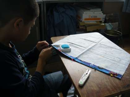 今日の家庭科の学習では,三つ折りした部分にしつけをしました。布の両端ともに,『三つ折り⇒アイロンがけ⇒待ち針をうつ⇒しつけ』ができました。短時間で作業ができました。縫い物がどんどん上手になっていく5年生です。
