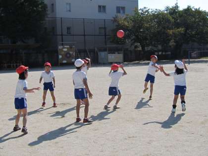 体育の時間に「ボールあそび」をしています。