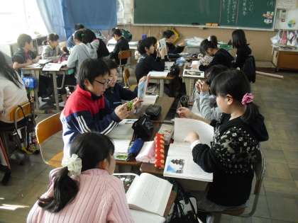国語は「千年の釘にいどむ」を学習しています。ノンフィクション作品の主人公の人物像を読み取り,自分の生き方や考え方と重ね合わせることで読みを深めています。「白鷹さんのような努力家になりたい。」といった意見が多く聞かれました。