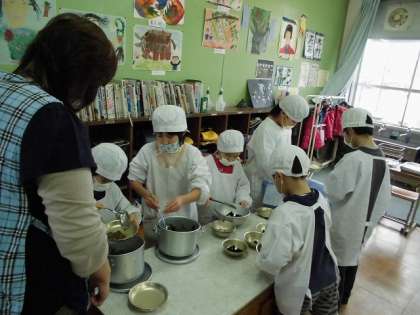 初日から自分の役割を覚え,食器や牛乳・おかずなどを運びました。
