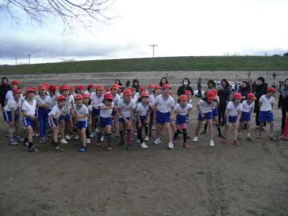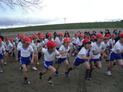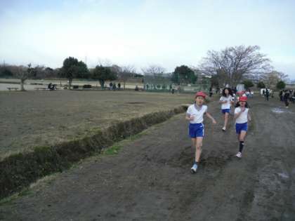 走るコースは、少し地面がぬかるんでいましたが,最後まであきらめずに走り切った子ども達。