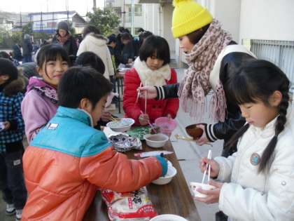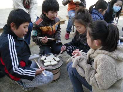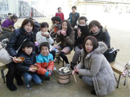 七輪を使っておもちを焼くと、「オーブンよりもはやく焼けるし、おもちがふくらんでいるのがよく見えたよ!」「七輪のふしぎがわかった!」と子ども達も喜んでいました。