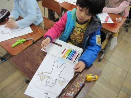 図工の時間に「楽しいピエロ」の学習をはじめています。