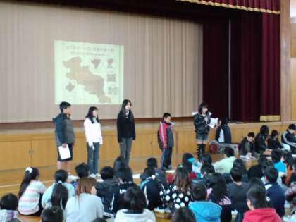 朝一番の冷え切った体育館でしたが,熱心な発表にみんな引き込まれ,静かにしっかりと発表を聞いていた子どもたちの態度もとても立派でした。