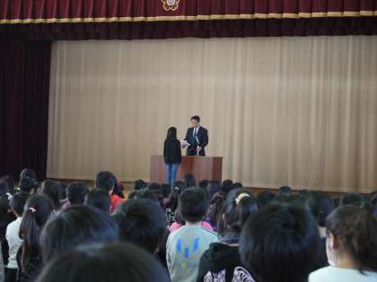 今日はいよいよ修了式。修了式では,5年生の児童が代表として通知票を受け取りました。6年生がいないのはちょっぴりさみしいですが,校長先生から「リーダーとして期待している。」とのお言葉をいただきました。