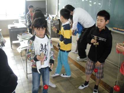 けん玉は,さっそく5年生の間でブームになっています!