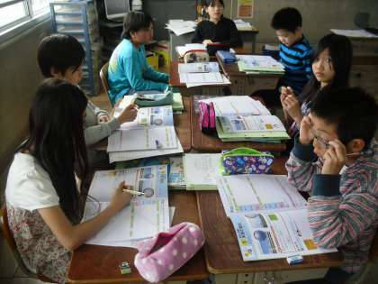 算数や理科では,自分の意見を近くの人に伝え合います。