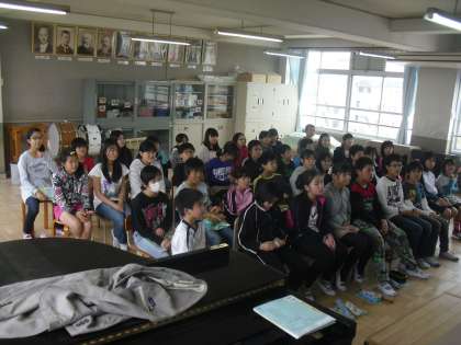 6年生の音楽は中学校の音楽の先生と勉強します。