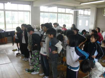 きれいな声を出すためにはどうするか。ということを考え,腹式呼吸について学びました。子どもたちは,おなかの周りに空気が入る感覚にびっくり!楽しみながらきれいな歌声について学ぶことができました。