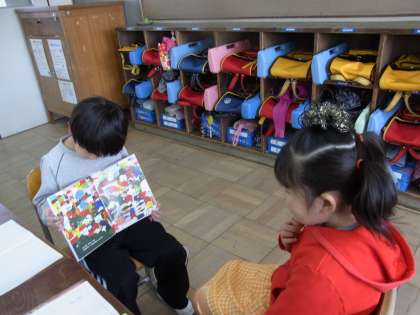 国語「ふきのとう」の学習で、春をテーマにした本を読み、自分が選んだ本を音読して友達に紹介しました。隣の席の友達に、一生懸命音読をして、本の紹介ができました。