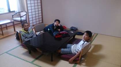 ホテルに到着したところです。広くて清潔な部屋でみんな大満足です。
