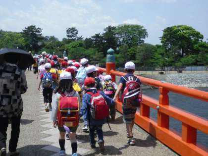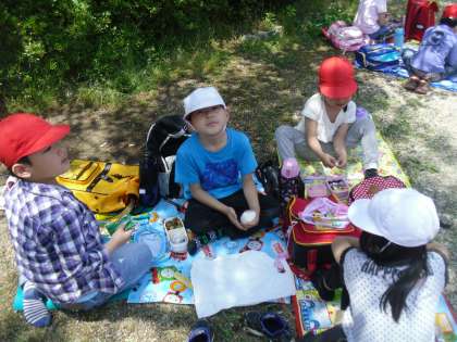 春の遠足〜3〜 公開日 2014/05/13 更新日 2014/05/13 1年生の部屋 頂上から降りて,次は待ちに待った お弁当タイムです。 塔の島まで行き, 仲良しグループごとにお弁当を食べました。 みんなそろったら 「いただきます。」 みんなおいしそうに食べていました。 朝早くからお弁当の準備 ありがとうございました。