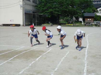 2チームずつでしたが,一生懸命走る子ども達。