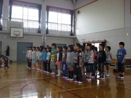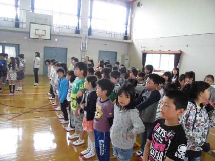 4年生の「1年生を迎える会」の出し物は,「君と僕の間に」を歌いました。体育館中に響き渡る大きな声で,素晴らしい2部合唱を披露してくれました。1年生だけでなく,全校生徒が感動しました!