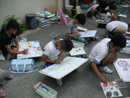 絵の具を塗る時も,とても丁寧に塗っている姿に,通りかかる先生方が立ち止まって