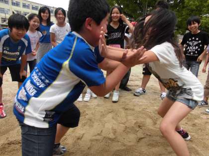 「男子が女子に相撲で負けるわけがない。」そんな一言から始まった昼休みの相撲大会。その後,クラス対抗,6年対5年など大いに盛り上がった休み時間となりました。そして男子は何気ない一言が,失敗につながることを学ぶことができました。