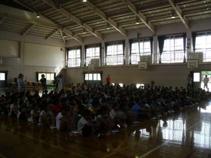 朝会では,校長先生が広島でおこった自然災害で犠牲になられた方の
