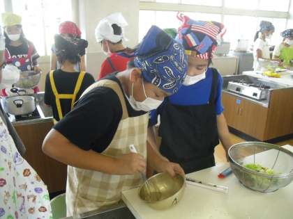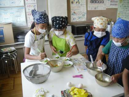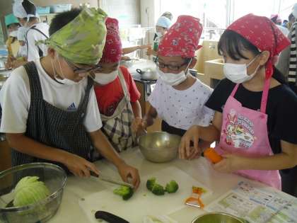班で協力して野菜をゆでたり,切ったり,時間をしっかり確認していました。