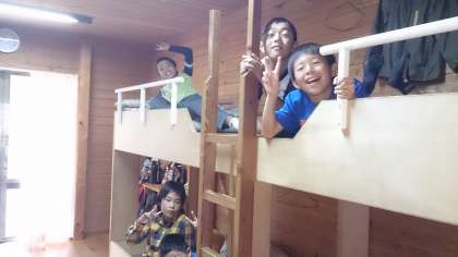 自分の寝具を準備しました。2段ベッドで、友達と一緒に寝ます。