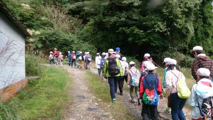 山登り、がんばっています。雨もやみ、峠まで登りました。今のところ、脱落者0です。