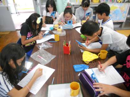 で,次回,はがき新聞にまとめて,向島小学校のみんなに「むし歯を防ぐ歯の磨き方」を