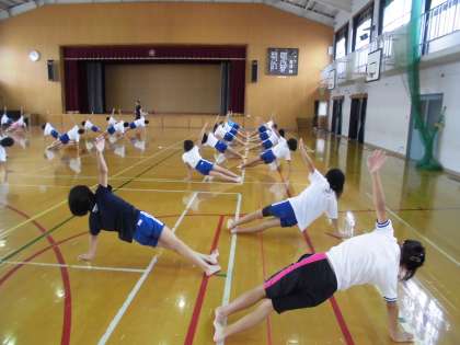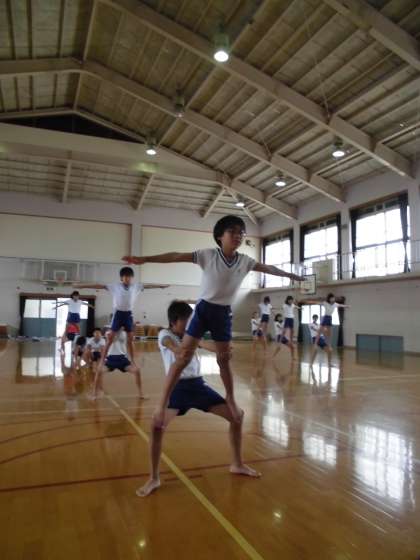 運動会が近づいてきました。今日は,初めて音楽に合わせて組体操の一人技〜三人技に取り組みました。初めて音楽に合わせたと思えないほどの出来に驚かされました。担任の先生を中心に,いいものに仕上げようとする雰囲気がとてもよかったです。本番も期待しています!