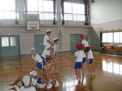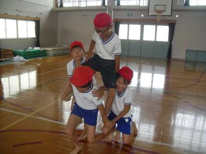 「○○さん上乗ってみて!」「ぼくが上いくわ!」など子ども達で意見をだしながら挑戦中です。
