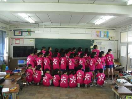 子どもたちもデザイン作成から携わり,運動会の組体操で着るのに今か今かと心待ちにしていたTシャツ。