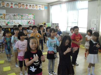 それぞれ違うリズムで手拍子をしました。