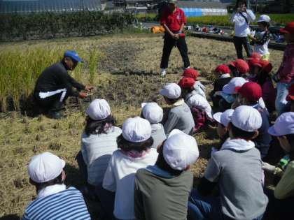 10月8日(水)に、地域の方のお世話になり、稲刈りをしました。