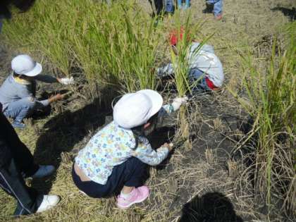 田植えをさせていただいた同じ田んぼでの稲刈りだったので、